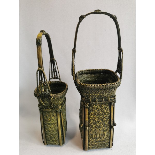 Sada 2 ks vysokých košíků. Materiál - rákos. Velice propracované. Může sloužit jako obal na květiny, ale třeba také jako dárkový košík na láhev nebo cokoliv jiného. Rozměr většího je 38x10 cm, menší košík je 34x8 cm.
