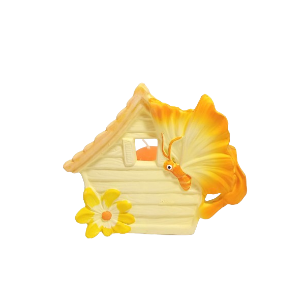 Svícen keramický - domeček s motýlem vč. svíčky. Velmi povedené.