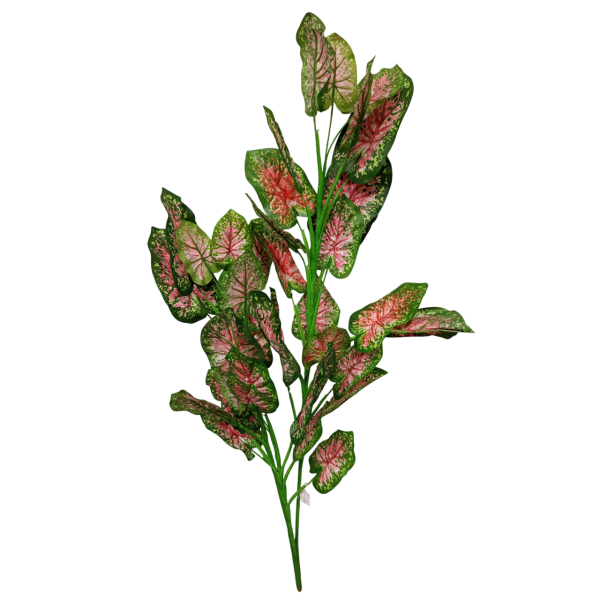 Caladium růžovo-zelené, 3 stonky, 36 listů, výška 120 cm.