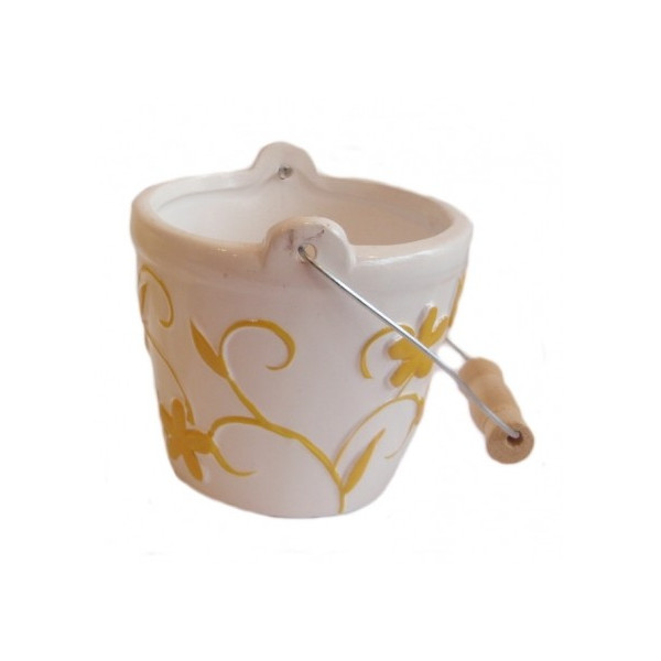 Obal kbelíček keramický bílo-žlutá Ø 8,5 cm