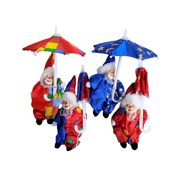 Klaun s deštníkem - 4 stylymateriál: látka, šňůrky, plast