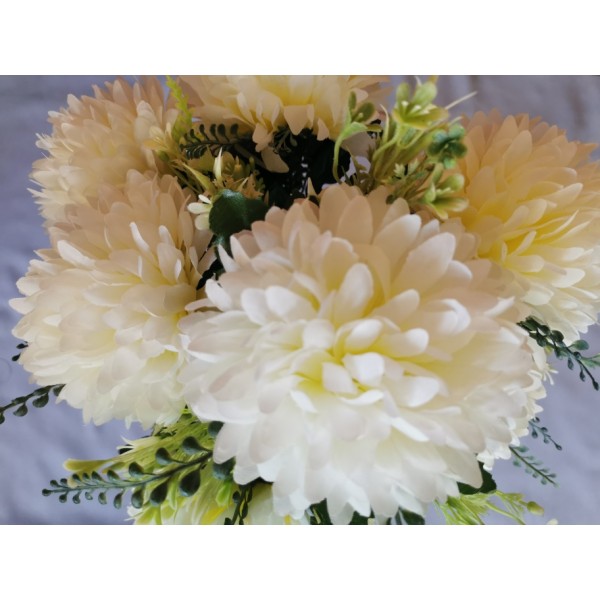 Chryzantéma kytice s přízdobou x 13 stonků (7 květů), v. 50 cm, květ 12 cm. Pěkné.
