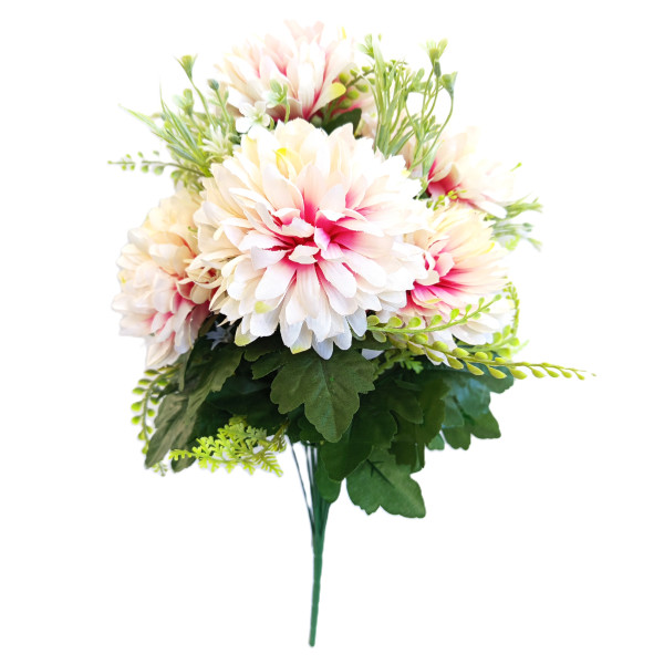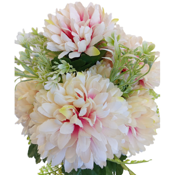 Chryzantéma kytice s přízdobou x 13 stonků (7 květů), v. 50 cm, květ 12 cm. Pěkné.