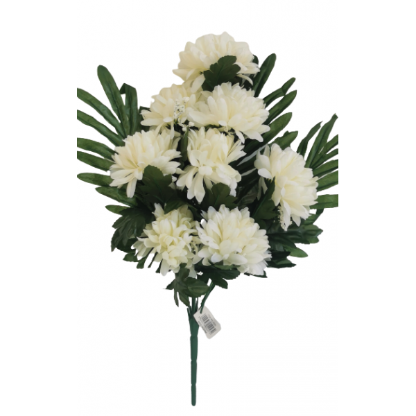 Smuteční kytice chryzantéma x 8 květů, s palmovými listy (3 ks), v. 46 cm, květ průměr 11 cm