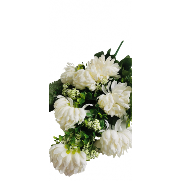 Chryzantéma kytice smuteční s palmovým listem. V. 68 cm; x 18 stonků; 9 květů