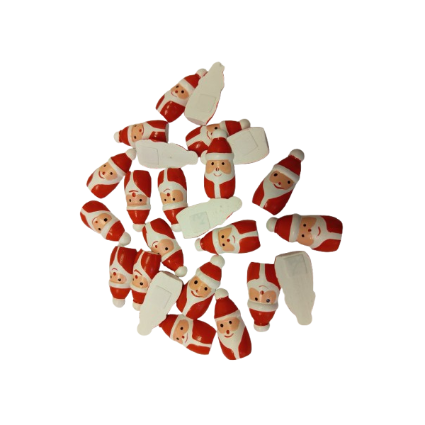 Dřevěná vánoční postavička "Santa", zadní strana jako samolepka. 3x1,5 cm, 24 ks v balení