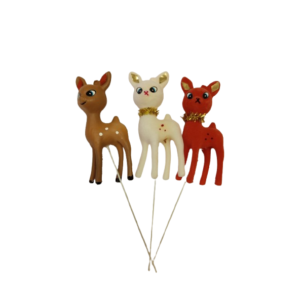 Veselý koloušek s drátkem k zapíchnutí do dekorací; 5x10x3 cm, sametový vzhled. V barvách: bílá, hnědá, červená.