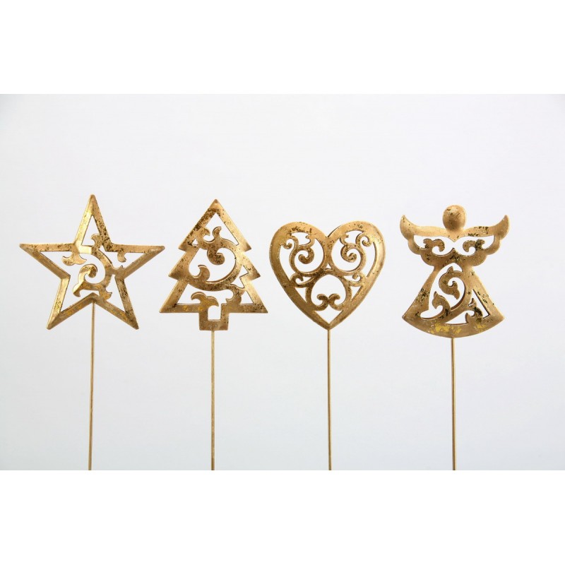 kovový zápich vánoční motiv, 4 styly; 4 ks v sadě