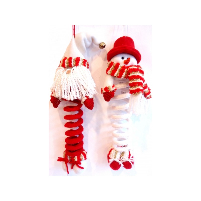 St.Claus a sněhulák závěs na spirále; materiál: látka, drát; 25 cm stažené, 32 cm natažené.