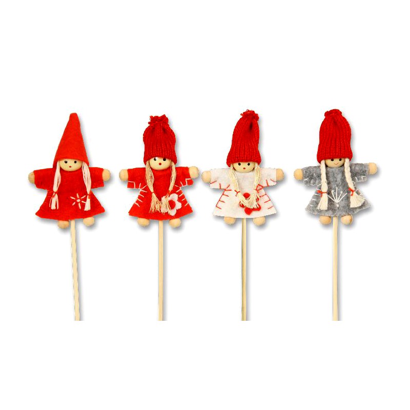 Holčičky na špejli, 4 styly, za tuto cenu 4 ks; rozměry: 5,3*1,5*8/25 cm; VÝPRODEJ