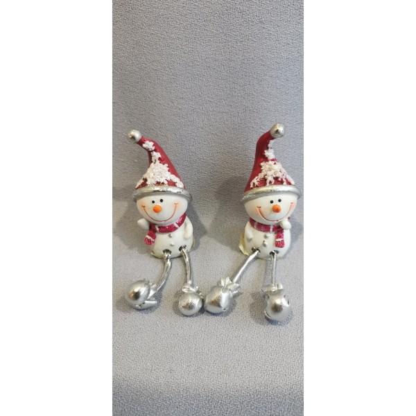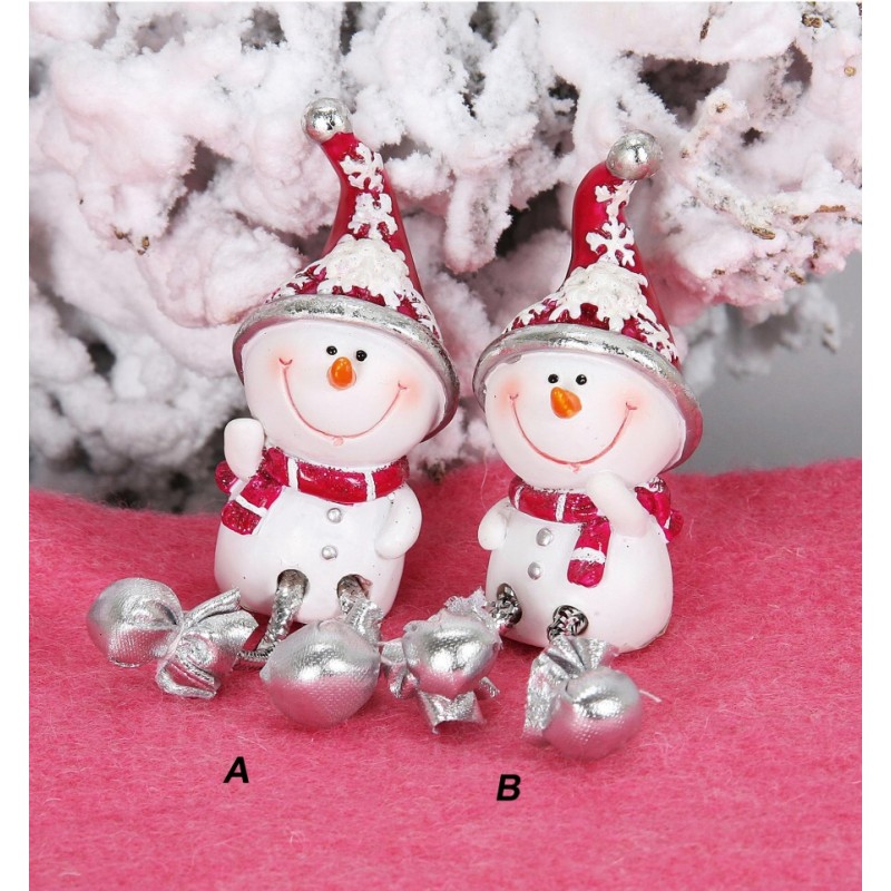 sněhulák sedící polystone, šnůrkové nohy, 2 styly, rozměry: 7,5/12 cm