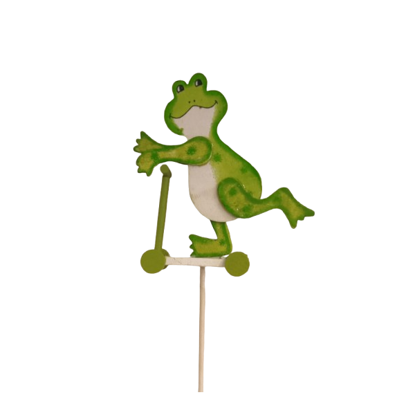 Dřevěná žabka na koloběžce, na tyčce - zápich.