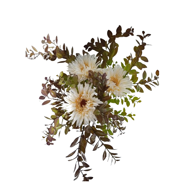 kytička gerber s přízdobou; 3 ks krémové gerbery + 2 ks přízdoby; původní výška gerber 57 cm - dá se zkrátit