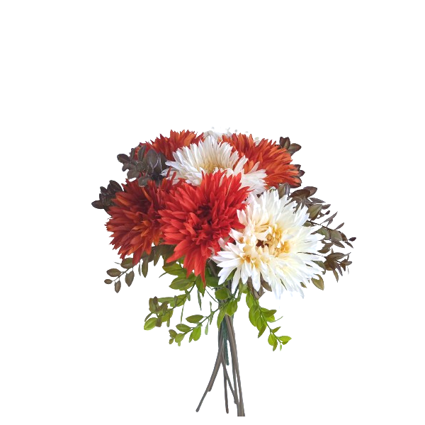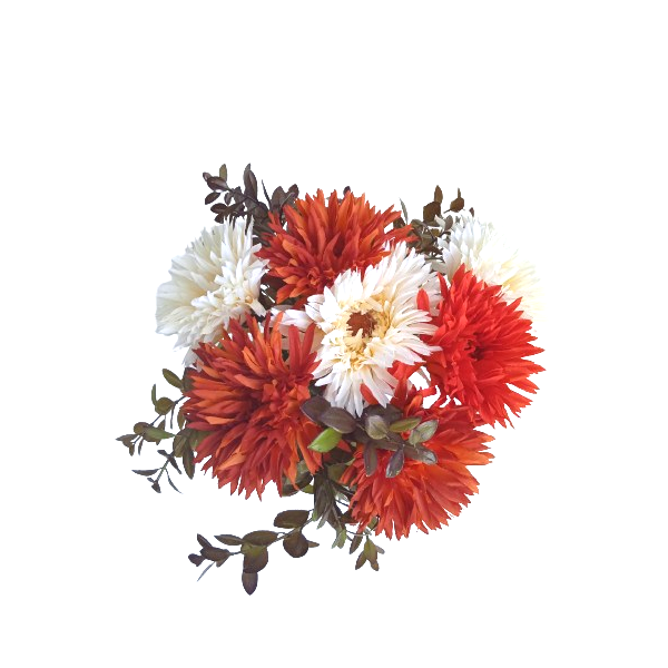 kytička gerber s přízdobou; 7 ks gerber (3x krémová, 3x hnědo-oranžová, 1xoranžová + 2 ks přízdoby); původní výška gerber 57 cm - dá se zkrátit