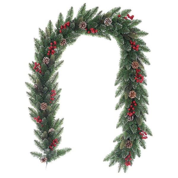 Girlanda chvojová zdobená zasněžená - se šiškami a bobulemi. Délka 200 cm. Stejný typ jako věnec art. č. 530-0069.