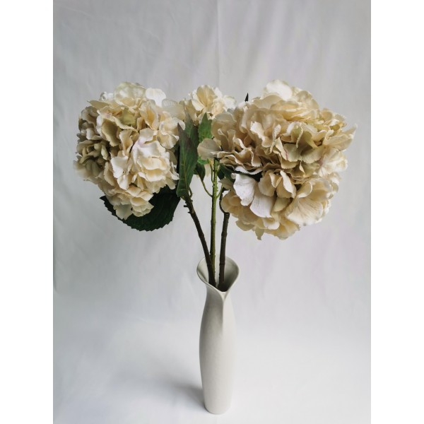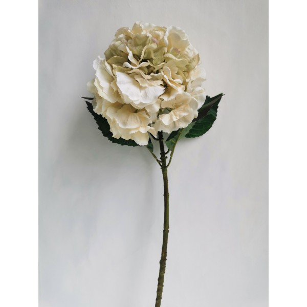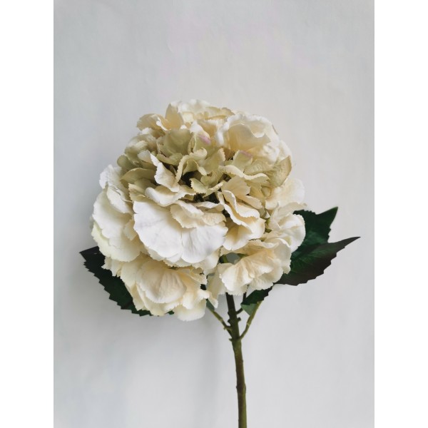 Hortenzie bílo-krémovo-zelená. Malinko světlejší než na obrázcích. Velmi bohatá, pěkná, luxusní. V. 50 cm, květ 20 cm