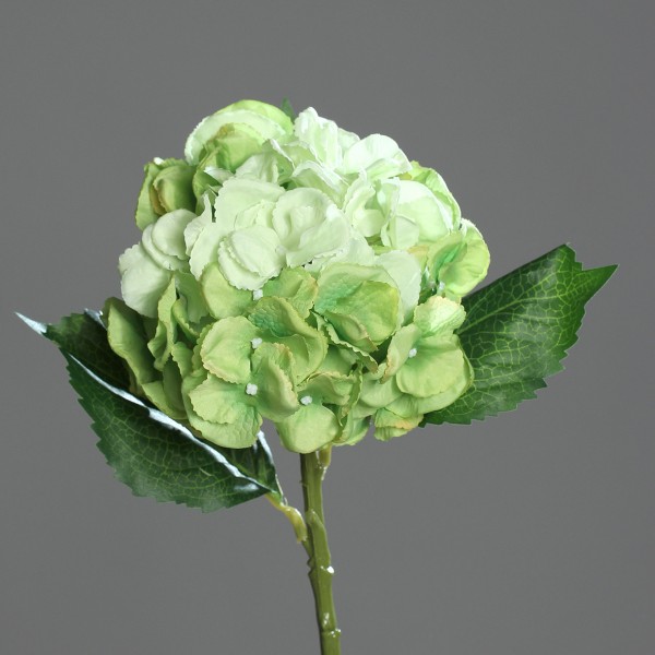 hortenzice x1, věrohodná imitace s precisně vyvedenými detaily; květ a 3 listy, v. 44 cm; průměr květu je 16 cm