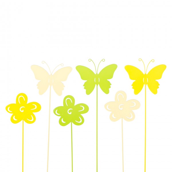 Dekorace jarní/velikonoční - 2 styly - zelený motýlek a žlutá kytička. Vel. 31x9 cm.