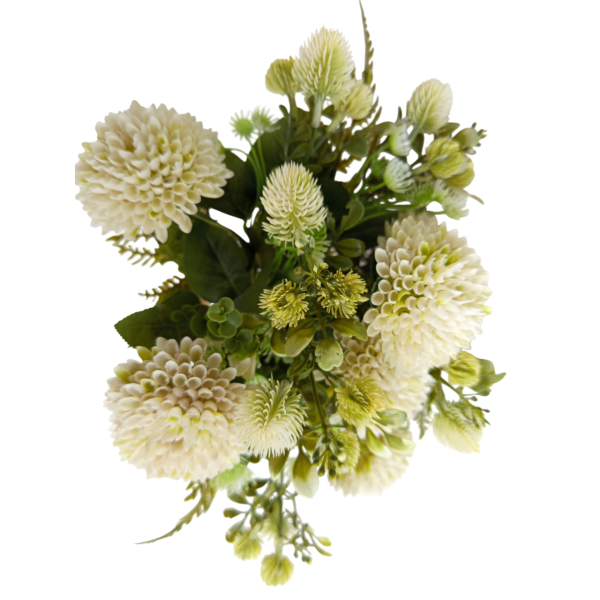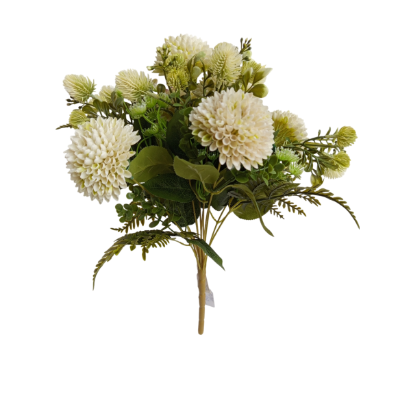 Jiřina bohatá kytice s přízdobou bílá 42 cm