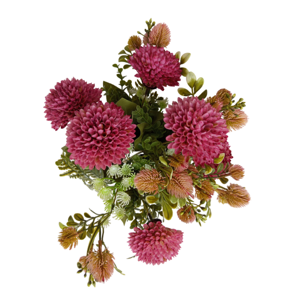 Jiřina bohatá kytice s přízdobou tm. růžová 42 cm
