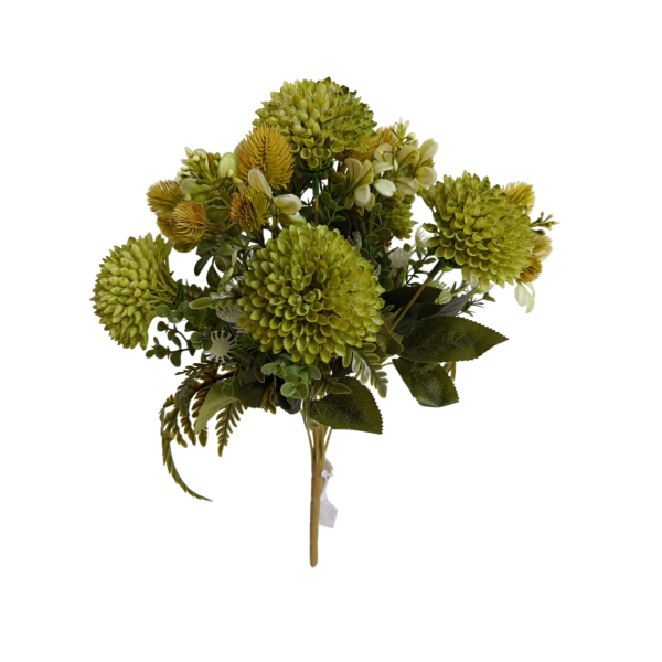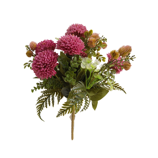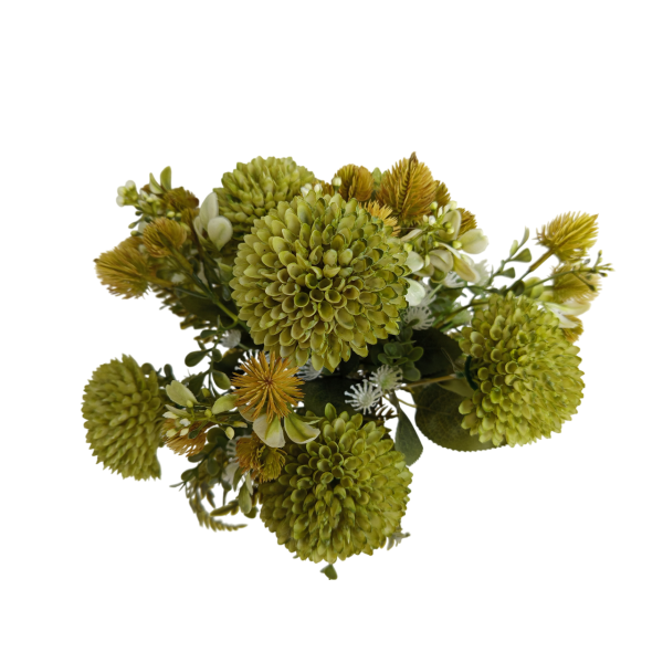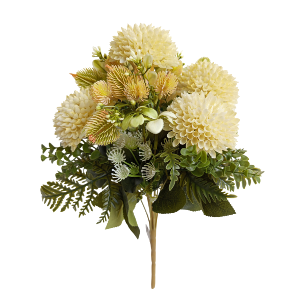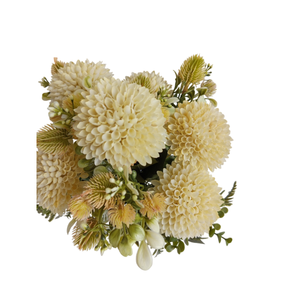 Jiřina kytice x 6 květů (průměr 7 cm), v. 42 cm; s přízdobou listů a květů. Velmi pěkné.