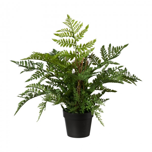 Kapradí x 38 listů, v. 45 cm, š. 35 cm; materiál listů je plast + uprostřed přírodní klacíky.