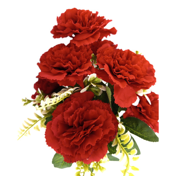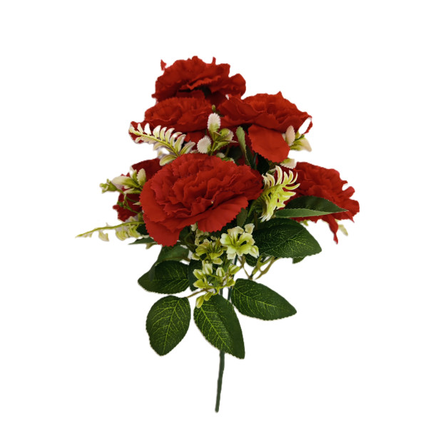 Karafiát kytice x 7 květů, v. 35 cm, květ vel. 8 cm, mat. - stonek a některé listy plast, květ a některé listy textil; vypadá pěkně a bohatě. Barvy do AUT tonů.