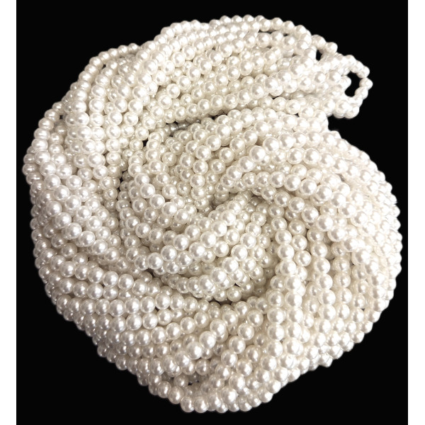 Korálky, plastové voskové perle, velikost 6 mm, bílé, navlečené na niti , 12 šňůr - 3240 ks. Vhodné pro dekoraci např. do váz, na květiny....apod.. Perličky jsou lehoučké. Na jedné šňůrce je cca 270 ks.
