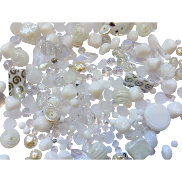 Mix skleněných korálků. Velmi zdařilý mix. Velká škála tvarů a barev. Korálky jsou české výroby. Fotografie je ilustrační, v balení se mohou vyskytovat i jiné tvary, barvy a dekory.