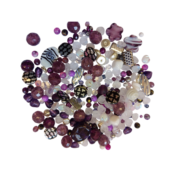 Mix skleněných korálků. Velmi zdařilý mix. Velká škála tvarů a barev. Korálky jsou české výroby. Fotografie je ilustrační, v balení se mohou vyskytovat i jiné tvary, barvy a dekory.