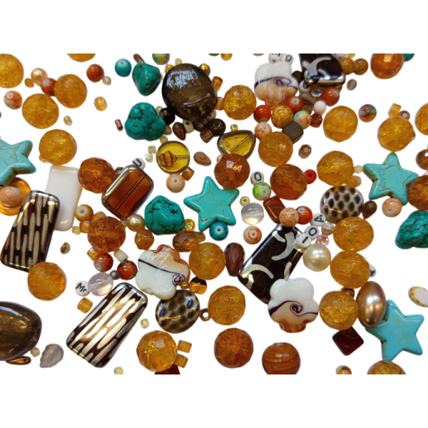 Mix skleněných korálků. Velmi zdařilý mix. Velká škála tvarů a barev. Korálky jsou české výroby. Fotografie je ilustrační, v balení se mohou vyskytovat i jiné tvary, barvy a dekory.