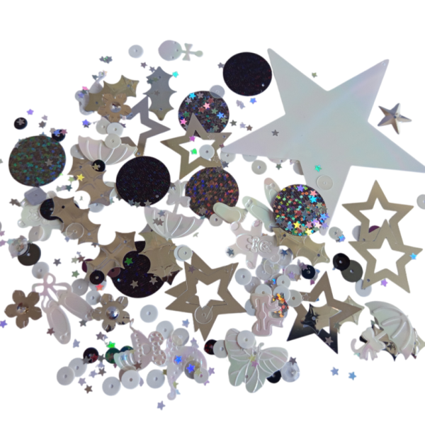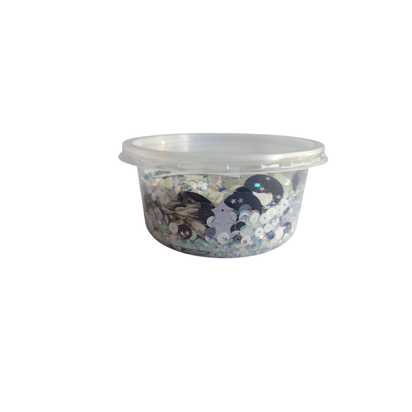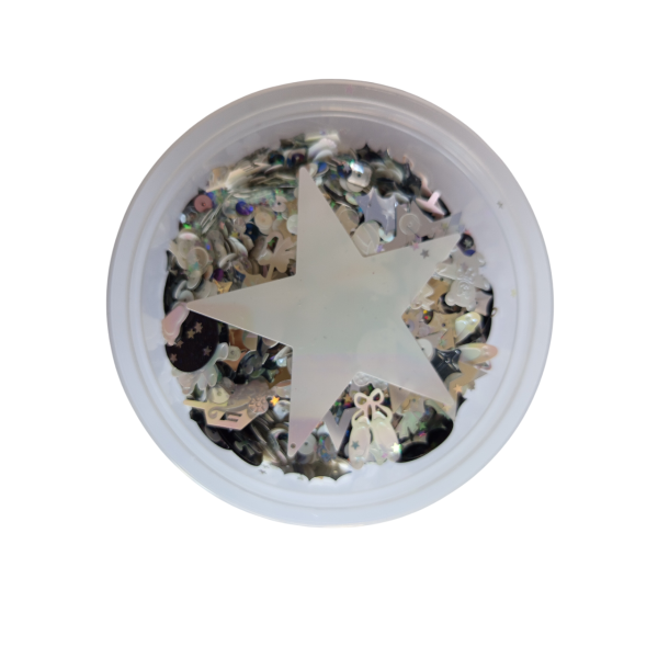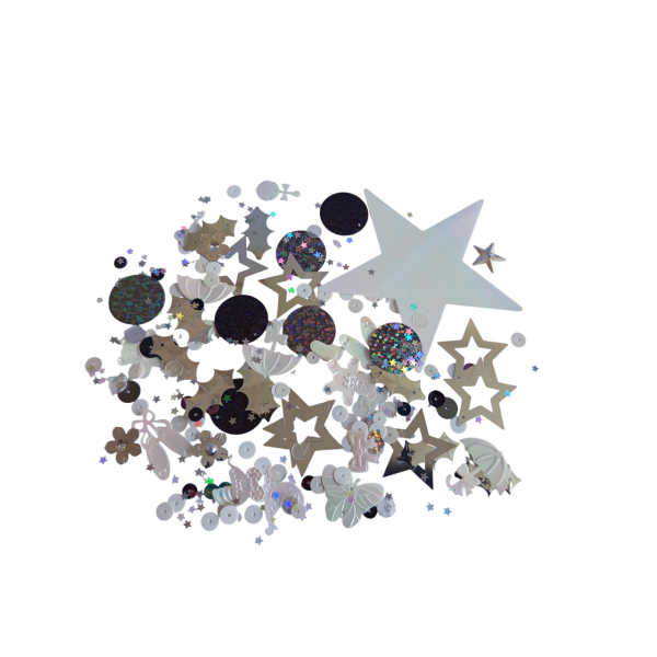 Flitry, mix barev, tvarů a velikostí. Skvělé na tvoření (našívání, lepení, obkreslování nebo aranžmá na párty stůl). Dodáváno v praktické plastové dóze o rozměru cca 11 x 5,5 cm. Obsahuje flitry rovné i prolamované, tvary srdce, lístky, hvězdy, kočárek, nožičky, motýl, kytka, sklenička a mnoho dalších. V každém balení originální mix tvarů a odstínů.