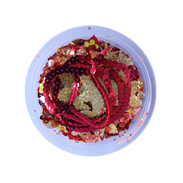 Flitry, mix barev, tvarů a velikostí. Skvělé na tvoření (našívání, lepení, obkreslování nebo aranžmá na párty stůl). Dodáváno v praktické plastové dóze o rozměru cca 11 x 5,5 cm. Obsahuje flitry rovné i prolamované, tvary srdce, lístky, hvězdy, kočárek, nožičky, motýl, kytka, sklenička a mnoho dalších. V každém balení originální mix tvarů a odstínů.