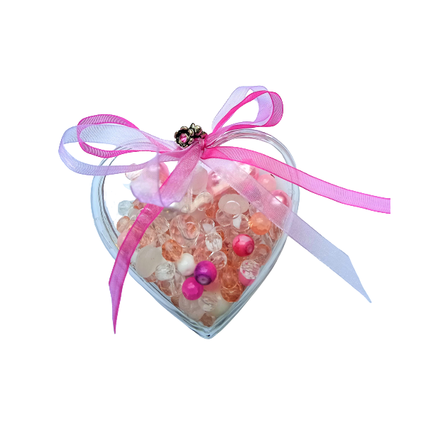 Srdíčko se skl.korálky, růžový mix