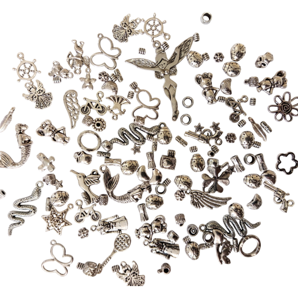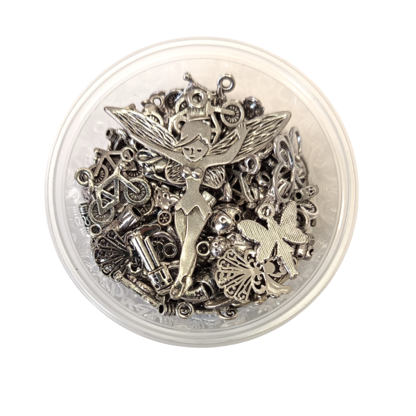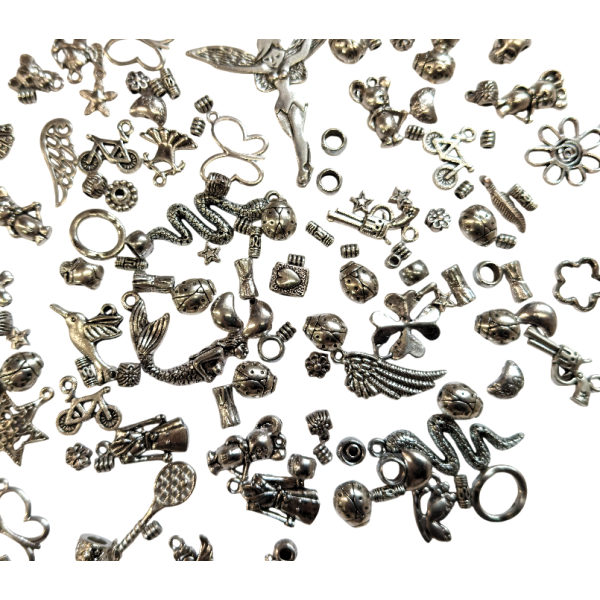 Mix kovových bižuterních korálků a přívěsků 150 g, ideální na tvoření různých náhrdelníků, náušnic, přívěsků a náramků nebo dekorací. Obsahuje cca 80 ks korálků a cca 80 ks přívěsků v glavanizaci stříbro, platina, starostříbro. Dodáváno v dóze 11 x 5,5 cm. Obsahuje mnoho různých tvarů a velikostí. V každém balení originální mix komponentů. Může být použito i v různých tvořivých kolektivech.