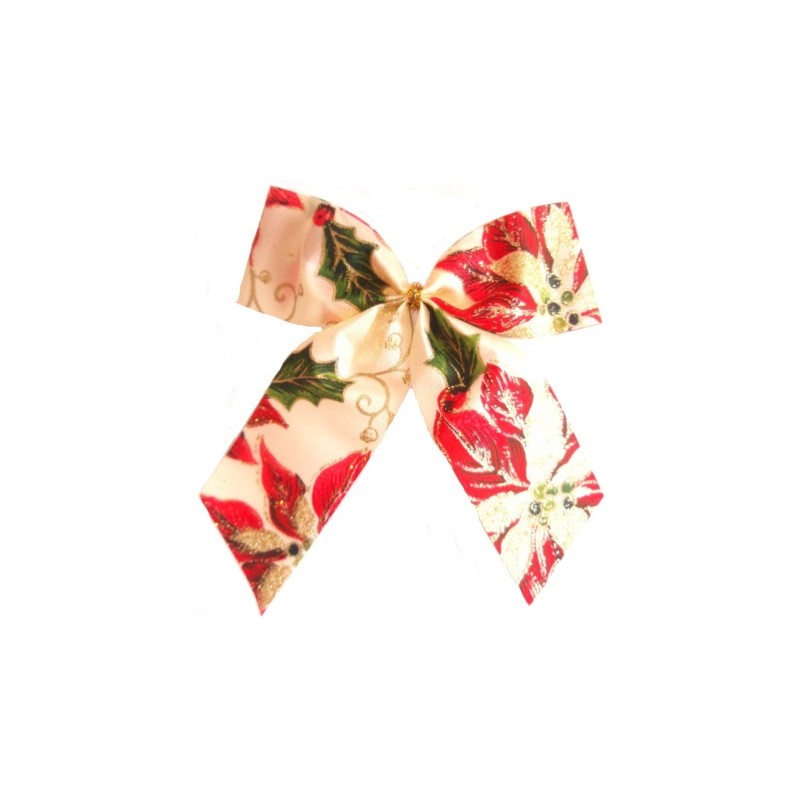 mašle vánoční (poinsettie,cesmína), sada 12 ks na kartě