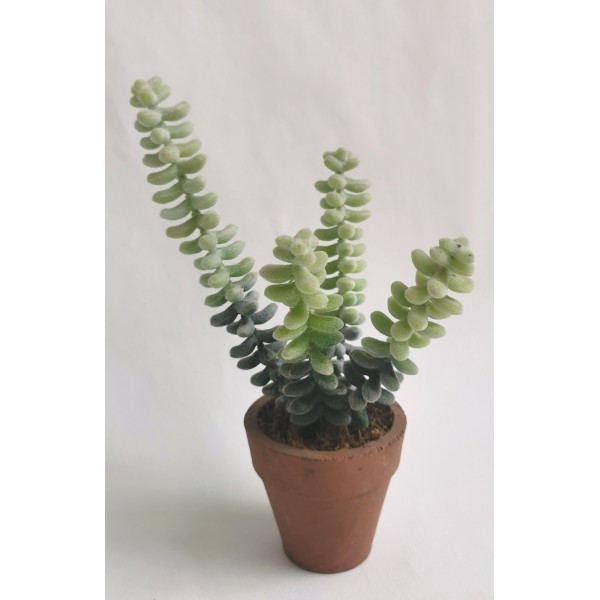 Sukulent x4 stonky v keramickém květináči; v. 20 cm (nejdelší stonek); vnější průměr květináče 7 cm.