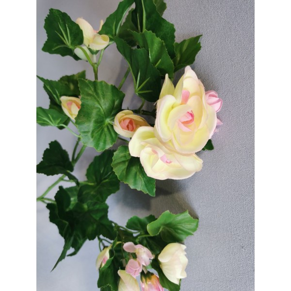 Vývazek begonie - květ a listy, délka 41 cm. Textil.