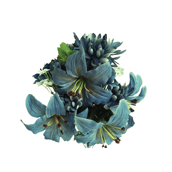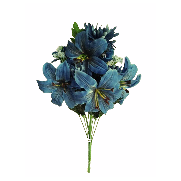 Kytice modrá - lilie, chryzantéma, azalka,... V. 44 cm; VÝPRODEJ
