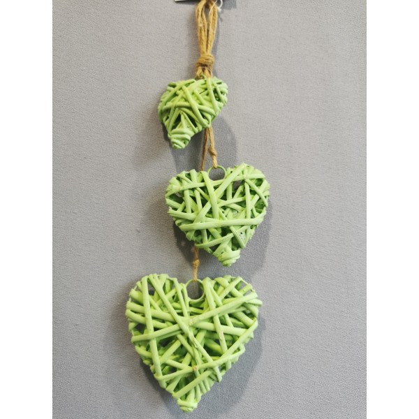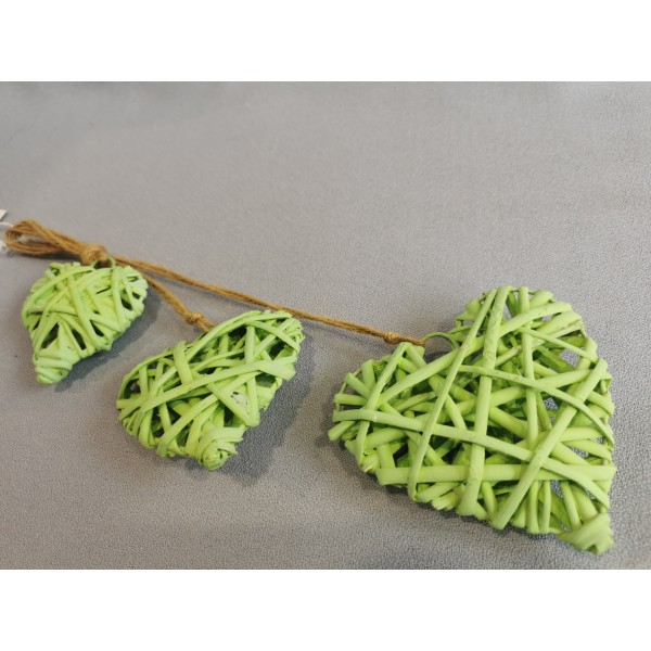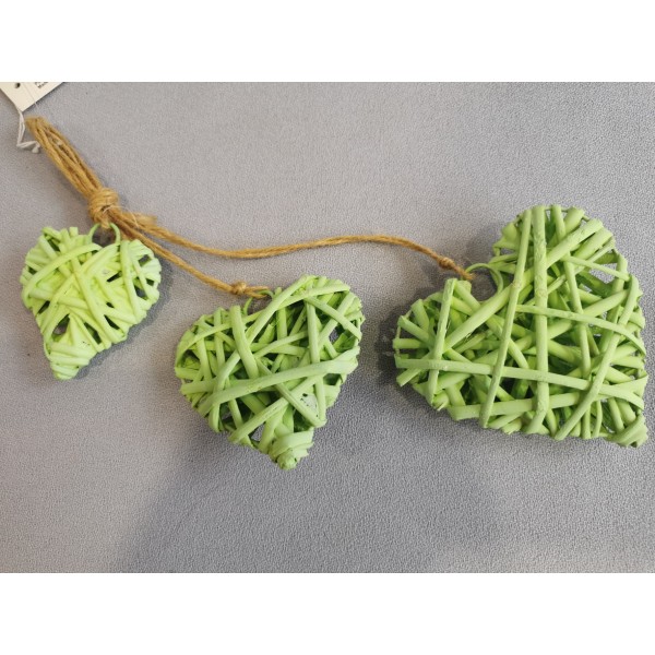 Srdíčka závěsná zelená z proutí 6/8/10 cm