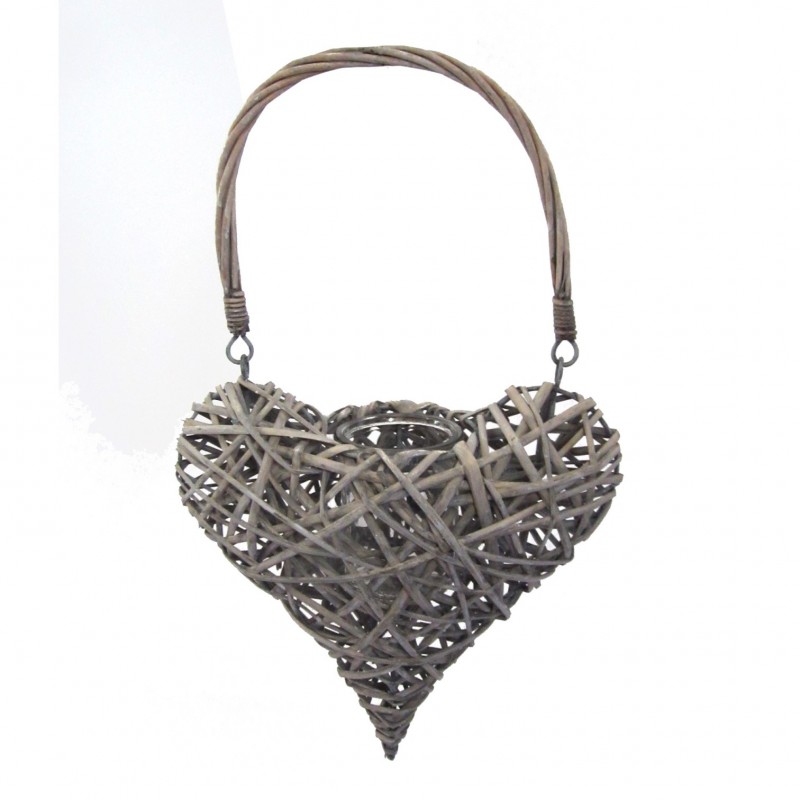 Svícen srdce přírodní z proutí závěs 29*10*28 cm