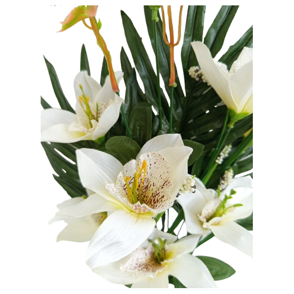Kytice orchidej s palmovým listem bílá 50 cm