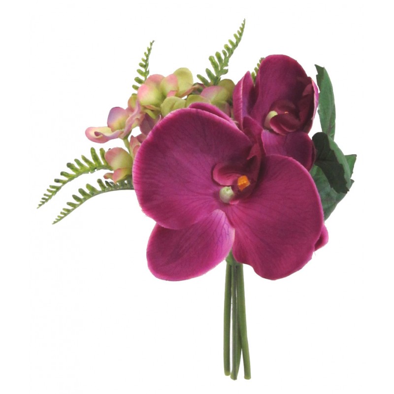 Orchidej s hortenzií kytička vázaná tm. fialová 20 cm