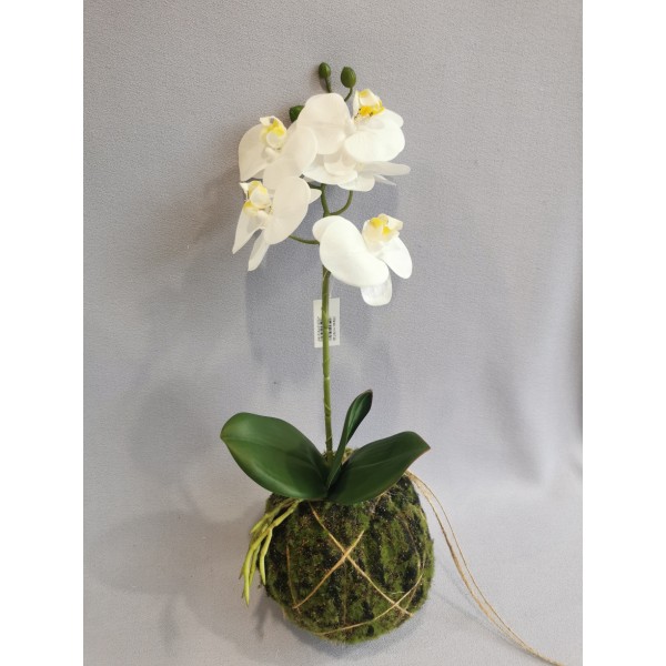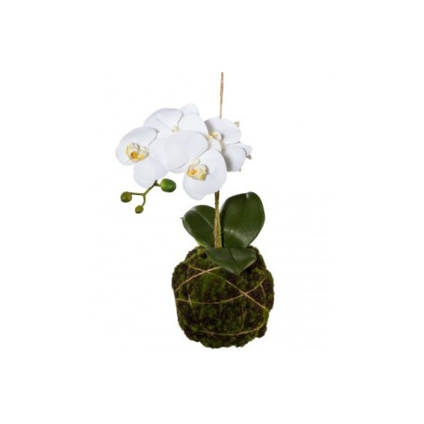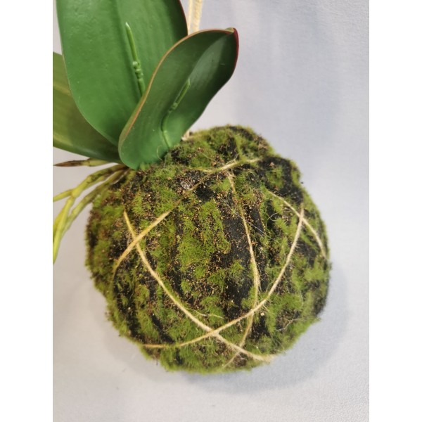 Orchidej závěsná - kokedam, v. 44 cm, mat. plast, textil, umělý mech, věrohodná imitace orchideje s precisně vyvedenými detaily