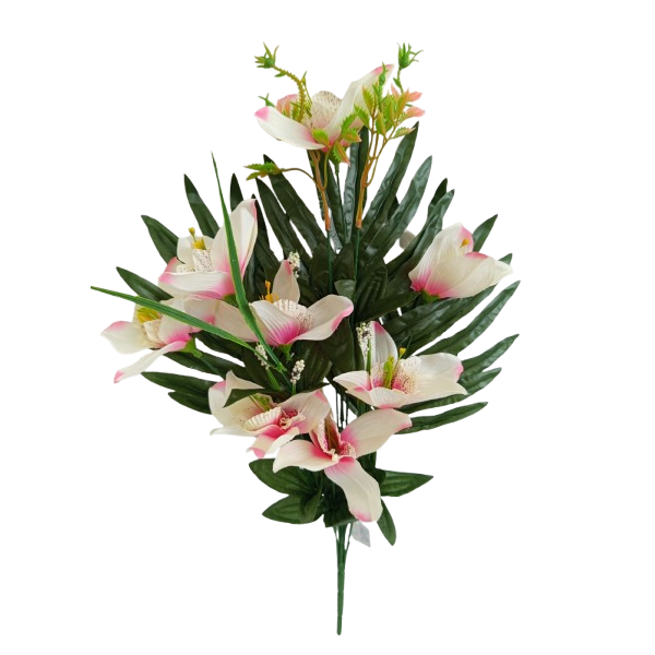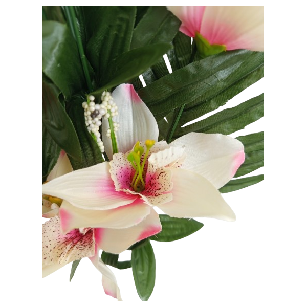 Kytice orchidej s palmovým listem bílo-růžová 50 cm