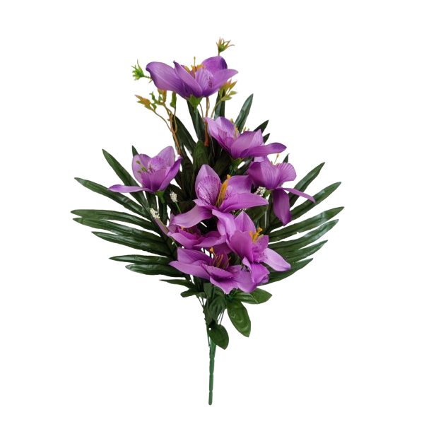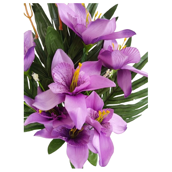 Kytice orchidej, přízdoba a palmové listy, celkem 10 stonků (8 květů). V. 50 cm.