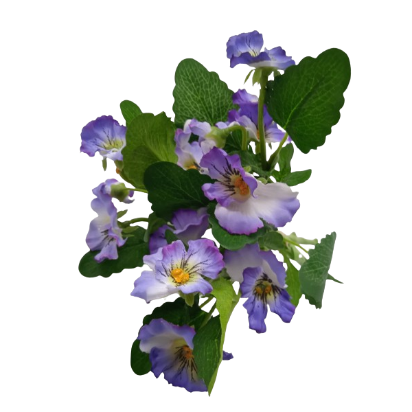 Maceška x 1, 4 květy a 1 poupě, v. 37 cm, květ 5 cm, moc pěkné provedení. Na obrázcích v příloze jsou vyfoceny ještě 3 ks jen pro představu jak maceška vypadá ve větším množství.