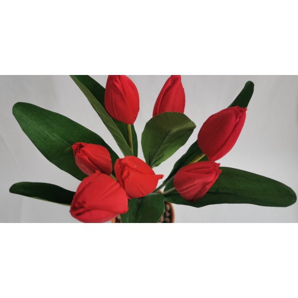 Tulipány svazek 7 květů; v. 42 cm; květ 7x4 cm; 6 barev; mat. textil