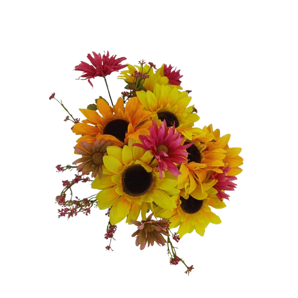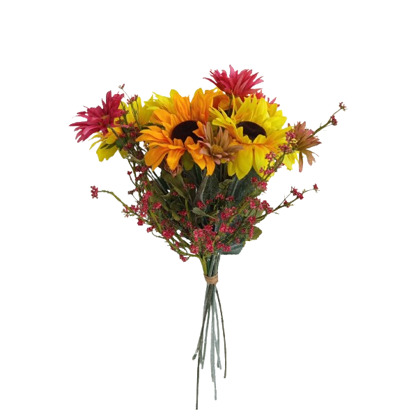 Kytice vázaná slunečnice + vínové květy 70 cm