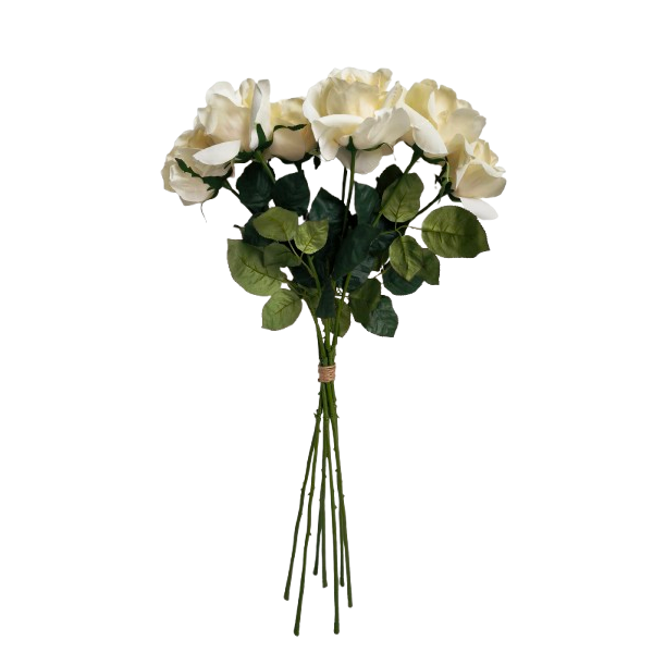 Pugét - kytice růže krémová rozvitá, 7 ks. V. 68 cm. Květ v. 7x š. 11 cm. Moc pěkná.